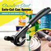 De veilige roestvrijstalen blikopener heeft een revolutionair ontwerp dat zich aan blikjes hecht, waardoor het openen en optillen van deksels gemakkelijk en leuk wordt! Het mes snijdt de randen bij, zodat er gladde, veilige randen overblijven.