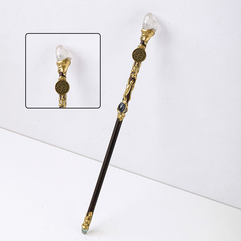 AMBACHTELIJK METAALWERK EN ELEGANTE AFWERKING: Voorzien van fijn gesneden metalen patronen in combinatie met stevig bevestigde kristallen. De combinatie van een vintage gouden afwerking en ruwe kristallen creëert een mystieke, fantasierijke uitstraling — perfect om magisch realisme op te roepen.