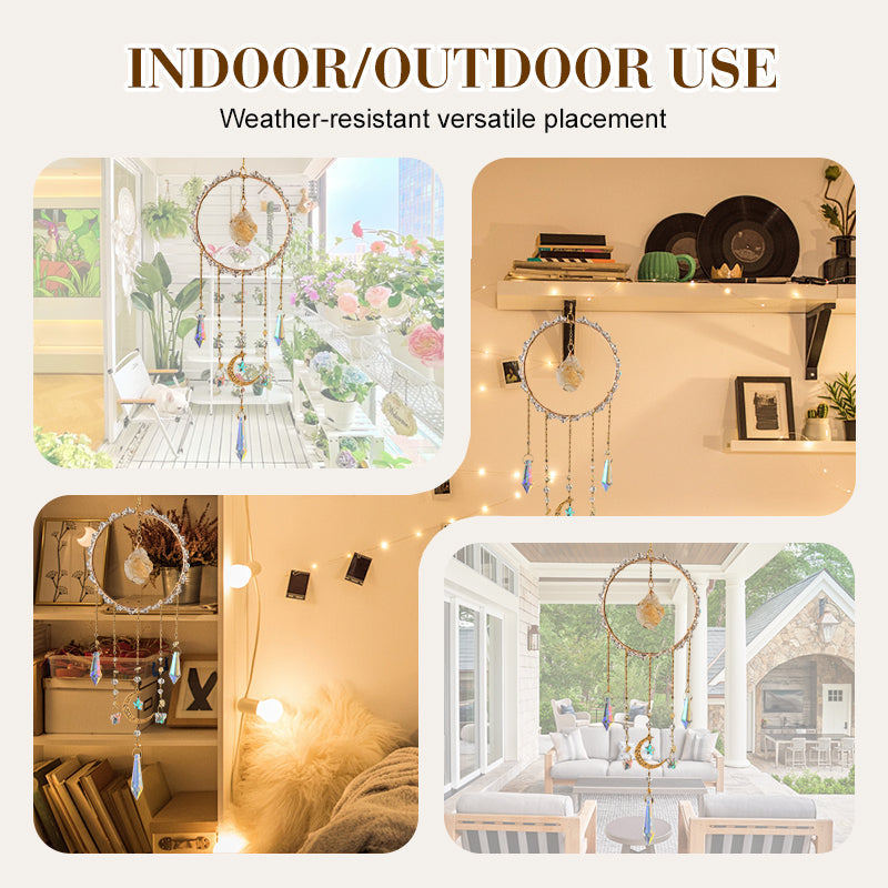DYNAMISCHE REGENBOGREFRACTIE – Iriserende glazen steentjes vangen zonlicht op en creëren dansende prisma-patronen. Elk element werkt als een miniatuurprisma, waardoor ruimtes transformeren met spectrale lichtshows die gedurende de dag evolueren voor een magisch visueel effect.