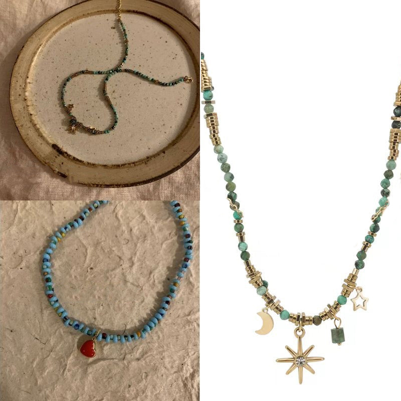 LITERARY RETRO STYLE – Designed for women who appreciate a touch of nostalgia, this necklace embraces a retro literary look. The beaded detailing and symbolic pendants reflect classic European charm, ideal for elevating minimalist outfits or complementing romantic looks.