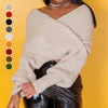 ELEGANT V-HALS ONTWERP: De V-hals van deze trui-sjaal accentueert prachtig je hals en sleutelbenen, wat een vleugje verfijning toevoegt. Het ontblote schouderontwerp geeft je look een vleugje sensualiteit en uniciteit.
